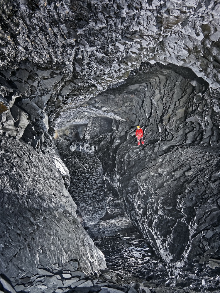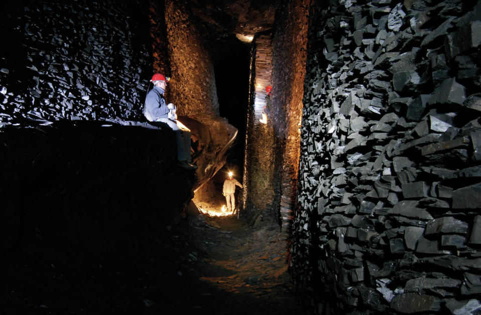 Vorbei an unterirdischen Seen, riesigen Hallen, die wie Kathedralen anmuten, über Schiefertreppen und durch schmale hohe Gänge hin zu den
